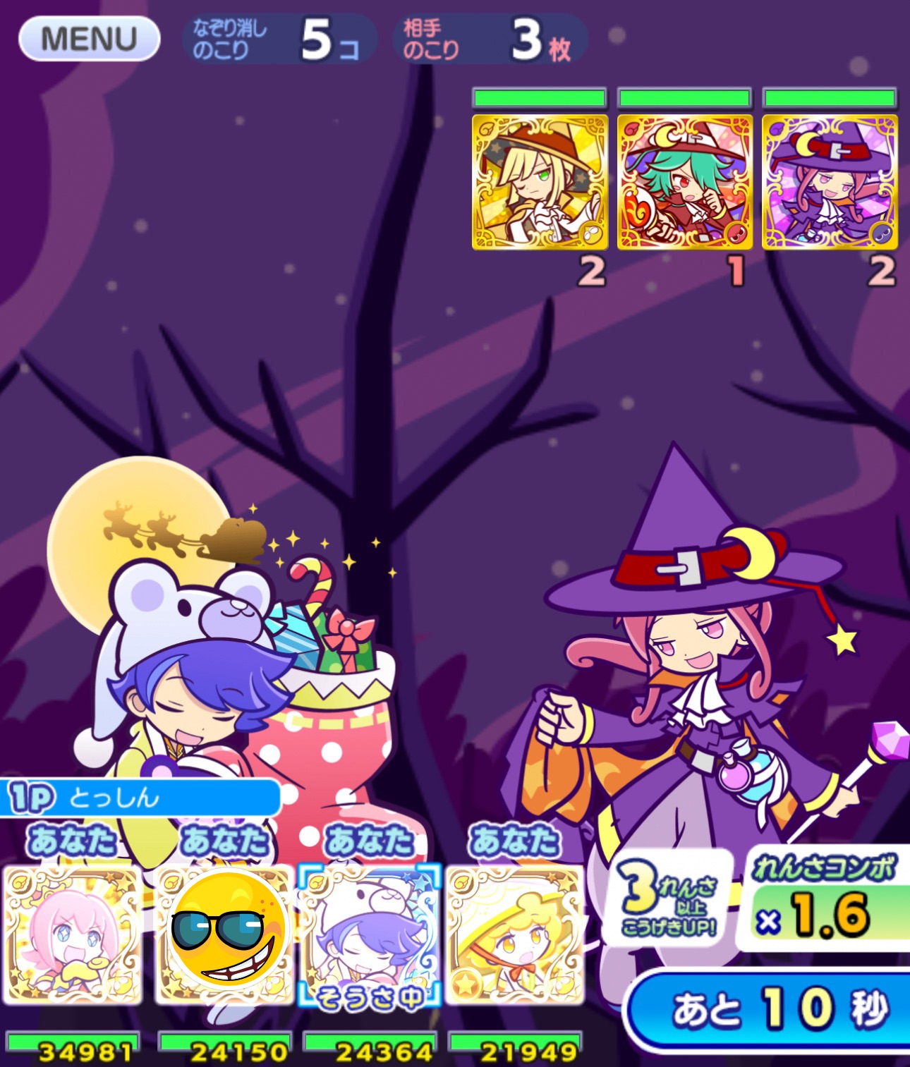 ドラマ化されてもおかしくないタイトルだと思います。このタイトルで日記を書きたいと、この瞬間に思いました。それがこのスクリーンショットにございます。普通はマルチプレイともなりますと、一人で出発することが出来ないのですが、最初だけ複数人で出発してから何らかの理由で他のかたとの通信が切れてしまうと、このように一人だけでマルチプレイをするという状況になるのでございました。時に寂しいとも思いますが、これはこれで旨みもあると最近思います。どのターンも時間制限で自身がパズルを消すために良い訓練になりますかと。ただ、一人となってしまったことで緊張感が無くなってしまうのは少し残念ではございます。今回は久し振りにこのような状況になったので孤独のマルチを堪能させて頂きました。ミッションにコンボマックスで終えるというものがあったのですが残念ながら達成出来ず自身の不甲斐なさを痛感して終わる形となりました。とは言え、その久し振りさが頭全体にまろやかな甘みを感じさせド深夜だったこともありパズればパズるほどに味わいが増す、まさに孤独だからこそ味わえる孤独による孤独な孤独のマルチであったのは間違いございません。なにやら書いていて書いている内容がよく分からなくなって来ました。あ、そうですそうです。実は昔は似たような状況を意図して作れたマルチプレイが存在したのですが、それはもう無くなってしまったのが寂しいものだと思えます。タワーマルチと申しまして。あれは孤独のマルチをしたい時に出来ましたので、あの頃の懐かしい味をも蘇りました。とのことでして、たまの孤独のマルチは貴重だなと思った次第です。ですので、そのようになってしまわれた時には是非味わって噛み締めて旨味を感じて下さいませ。それなりオススメのレシピです。そんなわけでしてマルチプレイの面白味も様々あるぷよぷよ!!クエストを遊んでみてはいかがでしょうか。楽しいですよ?