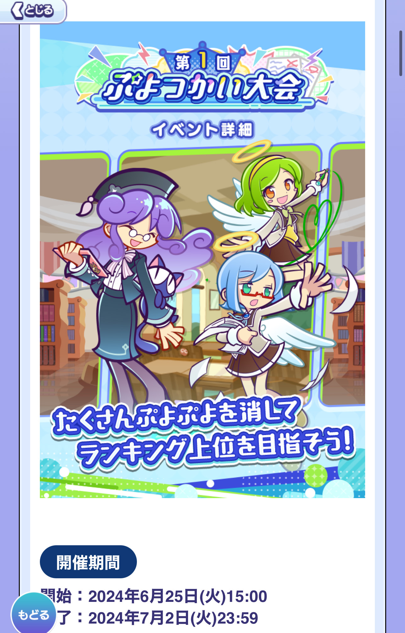 いよいよ開催されます。盛り上がっていきたいところです。がしかし。いや、がしかしは無いですよね。はい。がしかしは。がしかし。ああ、どうしても、がしかしを堪えられません。ですから、がしかしを言っちゃいます。これ、ただ課金した人が勝利、みたいなことにはならないのでしょうか。……。ぎゃああああ!言っちまったあ!申し訳ございません。ビンゴアリーナよりも、よりその色が濃いような気がしてしまいまして。どうなのでしょうか。第1回だけあって、これは新キャラクター揃えた者勝ち、なんてことには…ことにはなりませんよね。ぷよを多く消せるテクニックの持ち主が勝利するのですよね?だって、ぷよつかい大会ですもの。そう信じて大丈夫なのですよね?すみません本当に。不安しか口にしませんで。始まってもいないのにディスり気味なのは大問題です。反省してます。そして、こんな不安を口にする日記コーナーよりもオススメしたいのが、ギルドコーナーですものー!はい。更新来てます。ねるねるさんファンさんには、たまらない、ねるねるさん情報が満載なのでした。ギルド情報はオマケでいいと思います。はい。そして私は、やるべき事をやってませんからソレやりませんと。ご指摘受けて、あっ!となれました。そもそもぷよぷよ!!クエストから遠ざかり始めてます。これはマズイです。時間が真面目にないのですよ。それを考えますと、どっと疲労が押し寄せて参りました。遊びましょう。やるべきことを早々に終えてから、しっかりと。とのことでして、新イベントが、とても楽しみなぷよぷよ!!クエストを是非是非ダウンロードどうぞ。