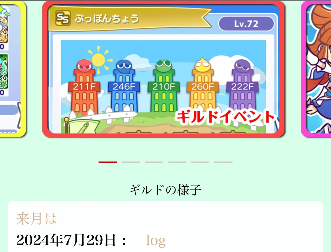 自分はこのぷよぷよ!!クエストというゲーム内で、よく誰かに謝っています。遊んでいるはずのゲームで謝るケースが出て来るということは、やはりリアルになれば、より謝るケースが増えるのではないでしょうか。そうです。リアルでも謝ってばかりいると思えます。人間性にペケが付いているということでございまして。遊びである、ぷよぷよ!!クエストで上手く世渡り出来ないものが、世間の荒波で上手く行くことなど絶対にないと強く思うのでございました。つまりはゲーム内で円滑にコミュニケーションが出来るならば、世の中でも若干は通用するのかも分かりません。となればです。やはりぷよぷよ!!クエストを底から楽しめさえすれば人生においても底から楽しめ易いのではないでしょうか。そこまで甘い世の中ではないと思っていても最低限ゲーム内で楽しめないようでは、より世の中など楽しめないのではないでしょうか。ちょいと強引とも思えますが、自分は人生を楽しむ糸口にぷよぷよ!!クエストを使いたいのでございます。疲れてますね。疲れてます。本日まだ一睡もしてませんでして。何時間起き続けているのかすら分からないです。ゲームに楽しみを求めるのは逃げでしょうか。ああ、なんたる悲観的な本日。あ、そうですよ。ギルドのコーナー覗いてみましょう。……。のわーーーー!前向きなご投稿ですー…私は世の中を怖い怖いと生きてますから、とってもお優しいかたが沢山いらして、辛いことも前向きに乗り越えていらっしゃるかたも沢山おいでなことを忘れがちになります。謝罪をする場面はありましたが励ましても頂けましたし、そして、このギルドのコーナー。自分の意識を変える切っ掛けを沢山貰っております。なのに落ち込んでいる場合じゃあございませんもん。些細かもしれませんが、たったひと言の文言で意識をガラリと変えられることを実感します。単純なヤツでいいと思います。前向きになれるなら。良い影響を受けられたのなら、それも誰かに還元しませんと。そうすれば自然と喜びに溢れられるのではと信じたいです。よし。リボーンです。もう何回この日記でリボーンしたか分かりませんがリボーンは何回だって可能と信じますもんー!多くの皆様に感謝です。あとは、眠るか遊ぶか。それが問題です。寝ないと駄目ですかね。