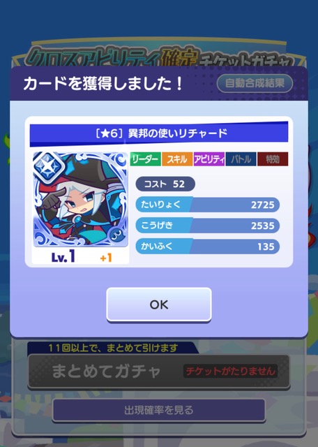 こんにちは?みにっくです!!タイムアタック、ぷっぽんちょうのみなさんが奮闘してくださいました!!その結果、なんとリボトロ獲得者が2名ということで、もしかしてぷっぽんちょうの歴史上初ではないでしょうか??どうなのでしょうか、私がいた期間では少なくとも初ですね♪かく言う私はと言いますと、ハイスコアは9294位、タイムアタックが1653位と言った結果でした!まずまず、ですかね苦笑でもアビリティ確定チケット貰えたので私としては大大大満足です♪そしてお迎えしたのが異邦のリチャードくんですね♪これで1凸です!次回はもっと上の順位を目指せるように頑張りま〜す!!!!