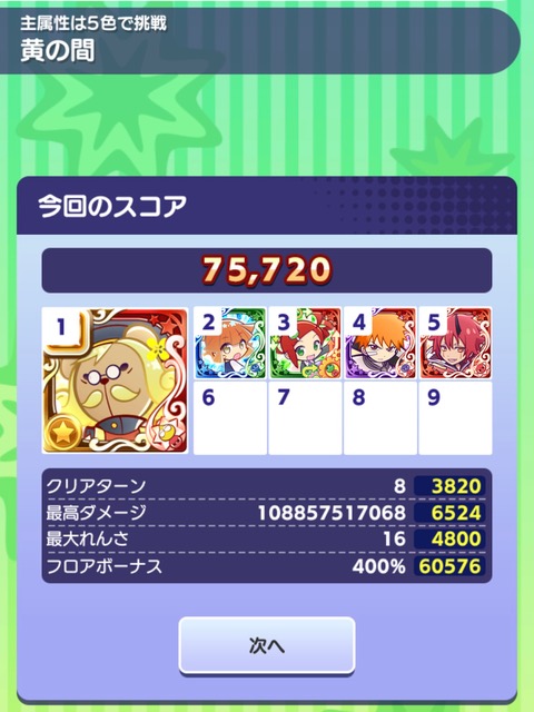 お疲れ様です♪普通の黒崎一護くんも結構貴重なスキルしているということに気が付きまして、これで蒸気の塔登ってみました!隣接エンハが効かないのでアリーナとかで使うことはないと思いますが、テクニカルだと結構いいキャラではないでしょうか!!!ちょっと上手く組めてないと思うのですが笑笑うまくいけばもっといいスコア出せると思います!!